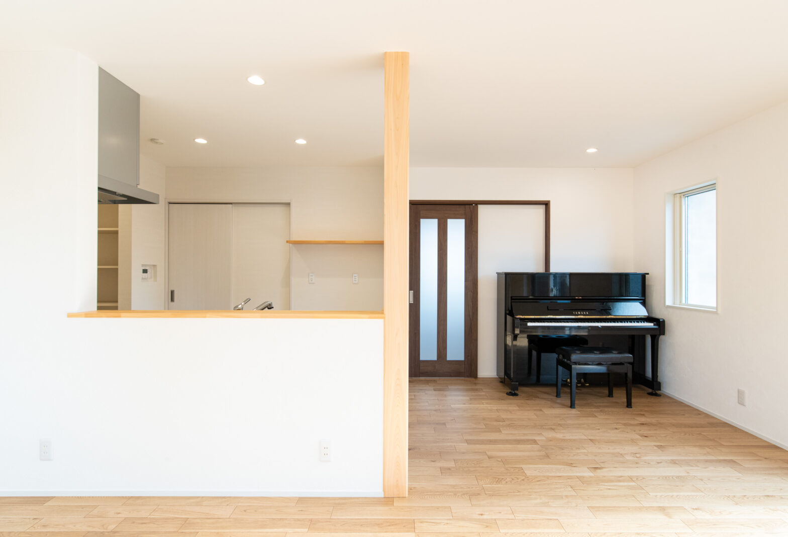 奥様の趣味であるピアノの配置にも配慮し、リビングに心地よい音色が響くよう設計しました。